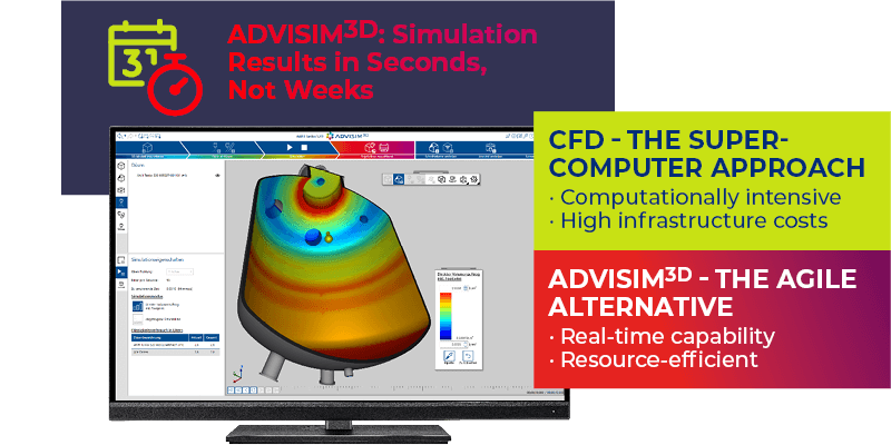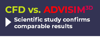 ADVISIM3D reliably simulates industrial spray cleaning processes. It identifies and realizes optimization potentials for GMP-compliant design, layout and operation of professional cleaning environments. With ADVISIM3D, users can make valid statements about spray shadows, volume flow distribution and cleaning effect in order to produce and store safely and hygienically.